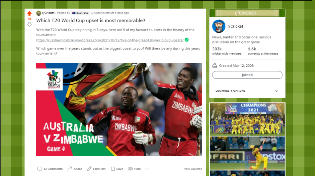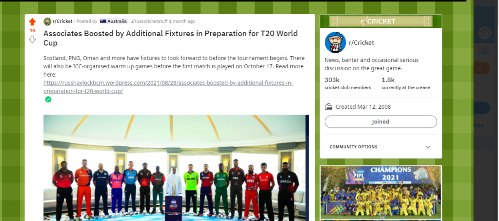The best way I have discovered to garner viewership on Reddit has been posting content with a visual and a link all ready to go in late afternoon, when subcontinental, English and Australian viewers are more likely to be online. However, there are many ways to use the platform and I am testing this one at the moment to gauge it’s reliability and usefulness in receiving user feedback and engagement.