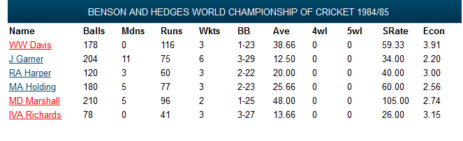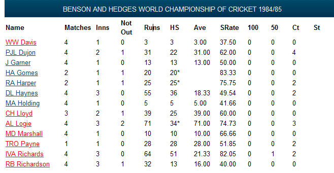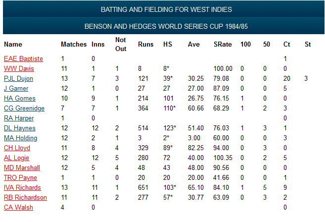 January 6-27, 1985: Once the Tests had concluded, the ODI tri-series with Australia and Sri Lanka began. Between January 6 and 27 the West Indies played, and won, nine ODIs, five against Australia and four against Sri Lanka, as well as beating the Prime Ministers XI and ACT in Canberra. The win in the PM’s XI game was arguably the hardest fought in this period, with Allan Border scoring 114 for the home team as they came up just 15 short in their chase of 284.