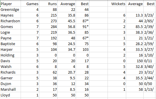 Many of the West Indian players from this tour have remained involved in cricket after their playing days, such as Desmond Haynes, who is currently head selector of the West Indies, a role that was previously occupied by Roger Harper. Courtney Walsh is now the coach of the West Indies women’s team, a role formerly held by Gus Logie, who remains a key figure in the game in Trinidad and Tobago. Joel Garner has spent time as a selector and manager of the senior men’s team, Jeff Dujon has also been involved as an assistant coach, and was also instrumental in developing their players union at the back end of his career. Before his tragic passing at the age of 43, Malcolm Marshall served as coach of the West Indies and of Hampshire, before losing his battle with colon cancer. May he rest in peace.