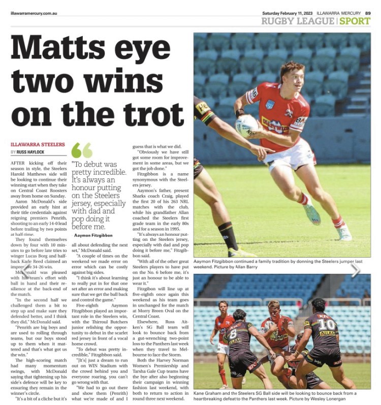 While in Wollongong I worked the Illawarra Rugby League media team and had pieces published weekly during the 2022 and 2023 seasons. I would also create graphics and highlights videos for our weekly newsletter and to support pieces on the IRL website. Below are examples of people and footy led stories, with the last one featuring some multimedia I put together using Clipchamp.