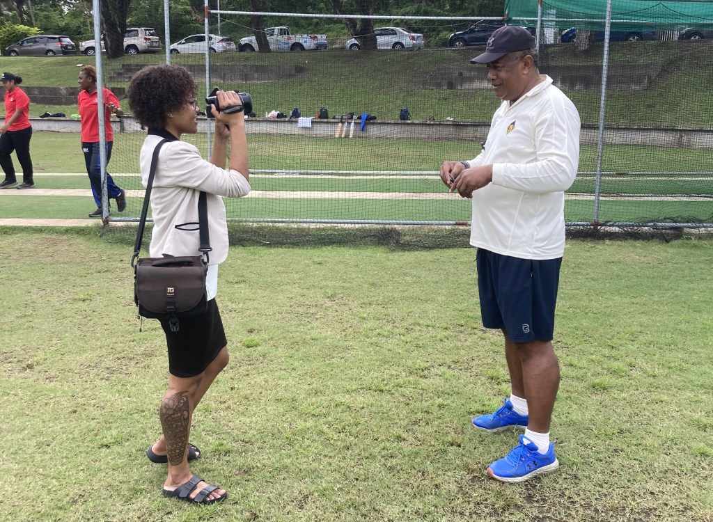 We also had an opportunity to meet and work alongside journalists from the Fijian Broadcasting Corporation and Vanuatu Television and Broadcasting Corporation. Here is a piece I helped with on a secondary school netball competition in Suva, and below is a photo of sports journalist Talei with national women’s cricket coach Jone Seuvou.
